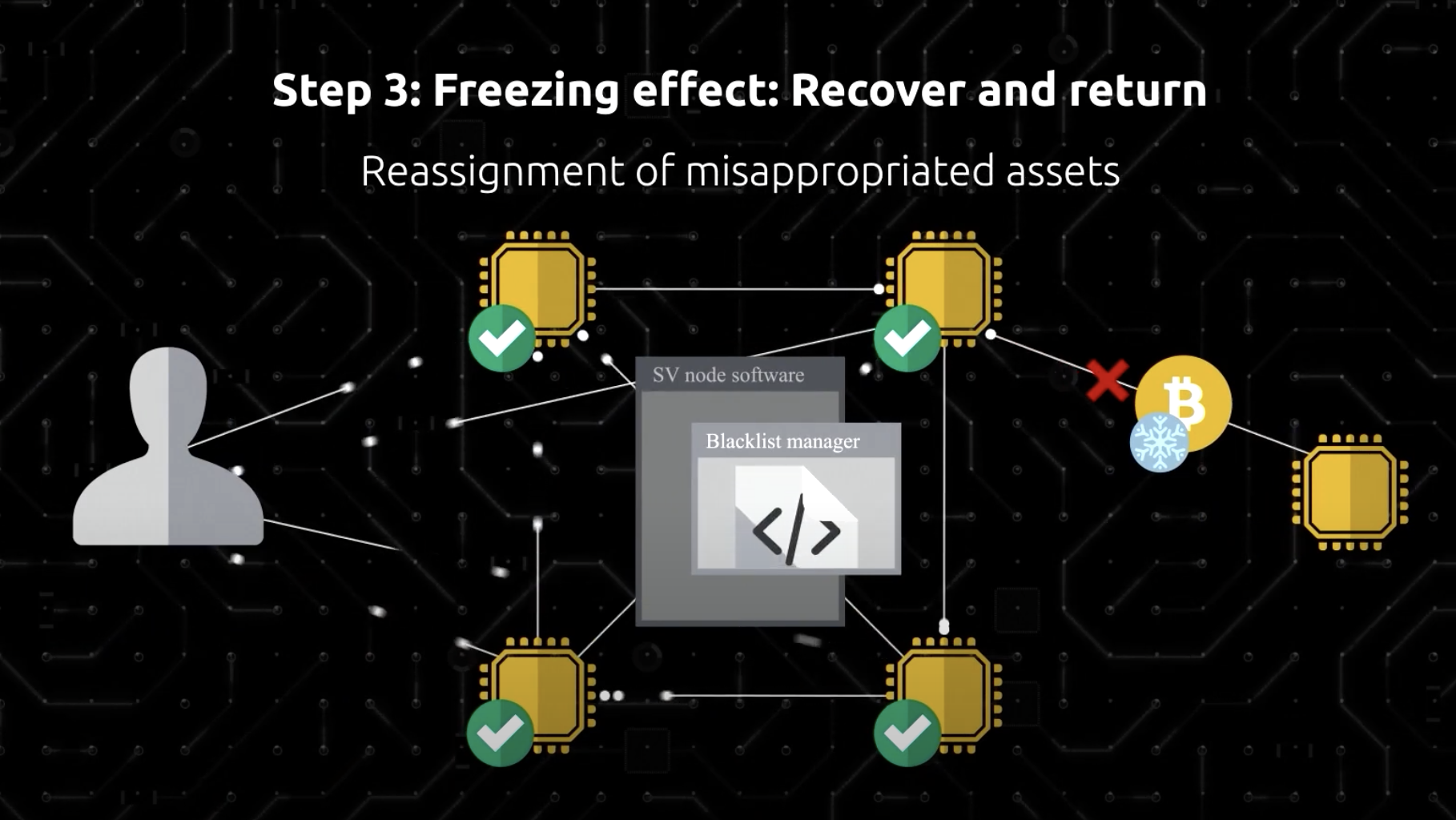 In the final phase of the Digital Asset Recovery Process (not yet implemented it seems, but explained in the video), the miners would also receive orders from the Notary to reassign assets and the miners would follow their orders on that as well as on the freezes.