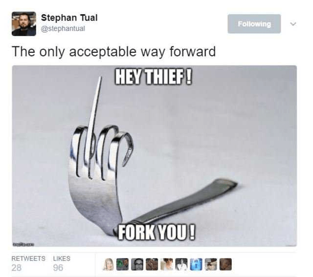 August 1st 2016 – The accidental beginning of the “100% ETH” purity pledge meme which drove the communities even further apart, as it became socially unacceptable to be associated with Ethereum Classic.