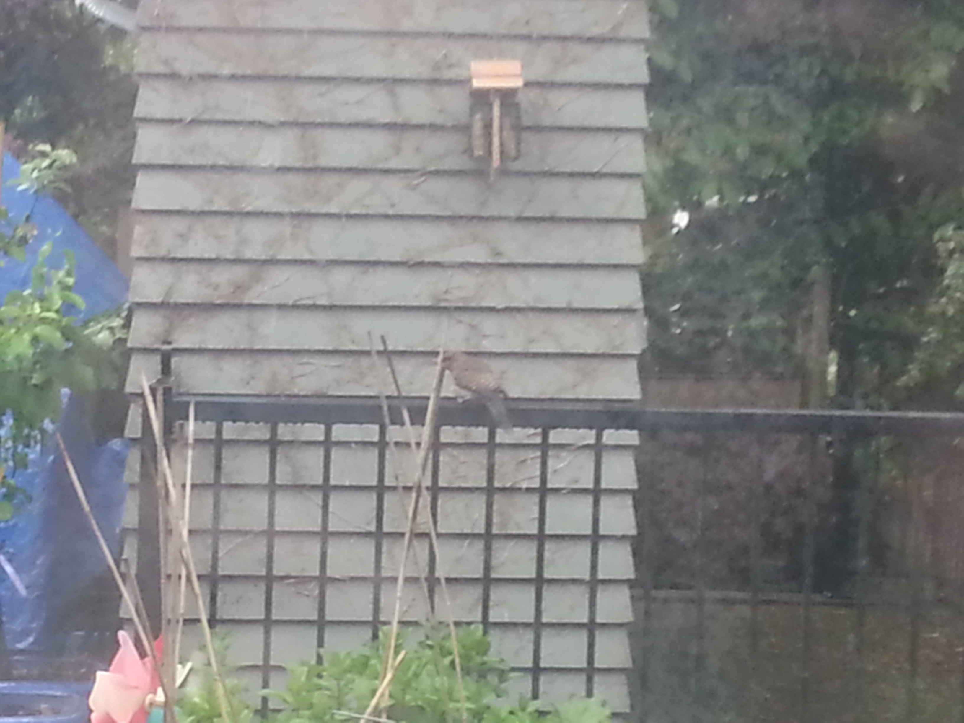 It had a red breast and very attractive brown/grey stripes. Got the good camera by the patio door, but out of batteries! Optical-zoom SLR photos coming soon I promise. Looks like we might have sightings on a near daily basis. I hope the Steller’s Jays are back soon!