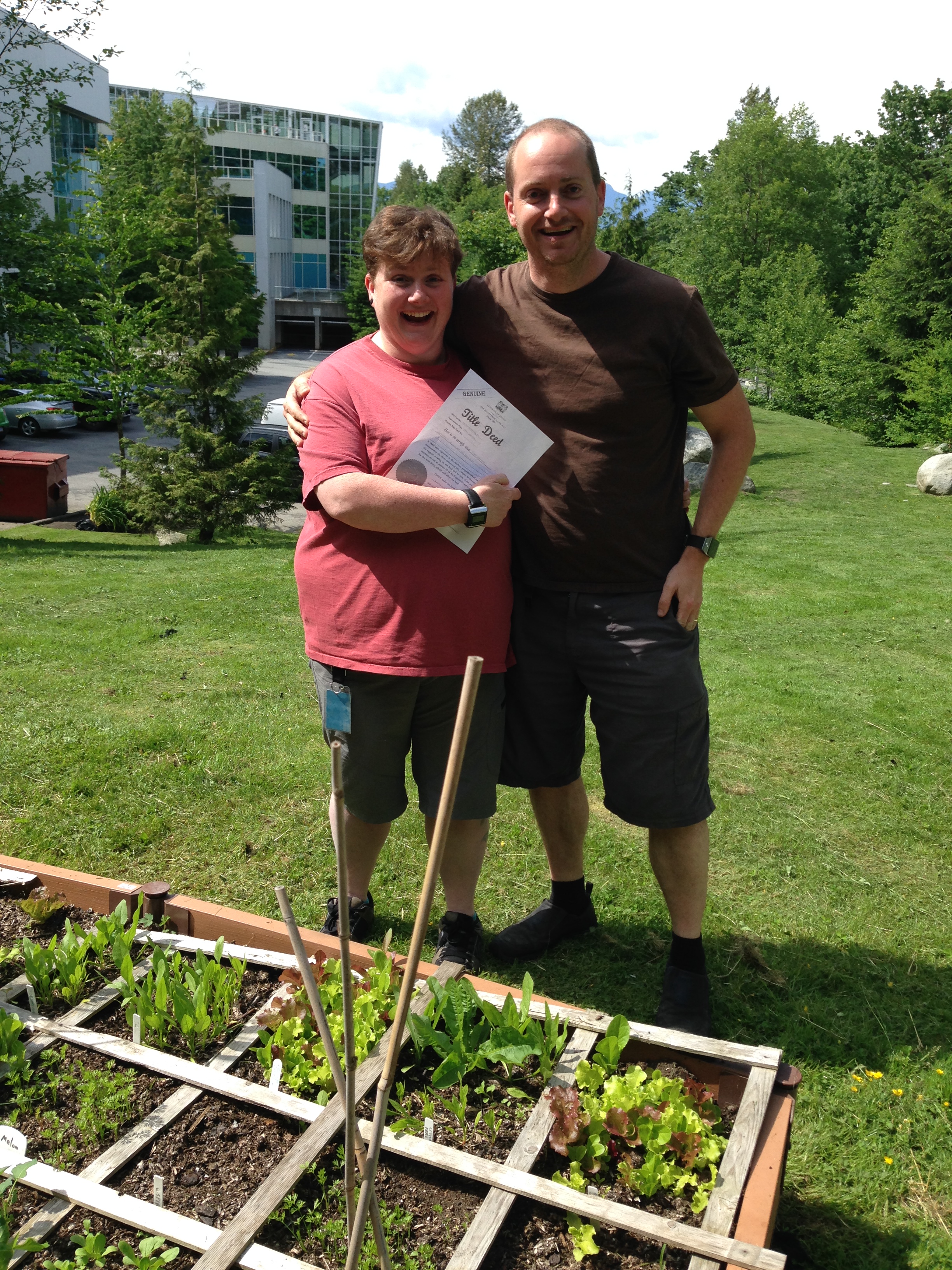 “Formal” handover of my raised bed at EA Burnaby to my friend Kris Stewart. Leave the company, lose your veggies! What a great perk this is. On-site gardening, for a lovely change-of-pace and re-connection with nature when you need it.